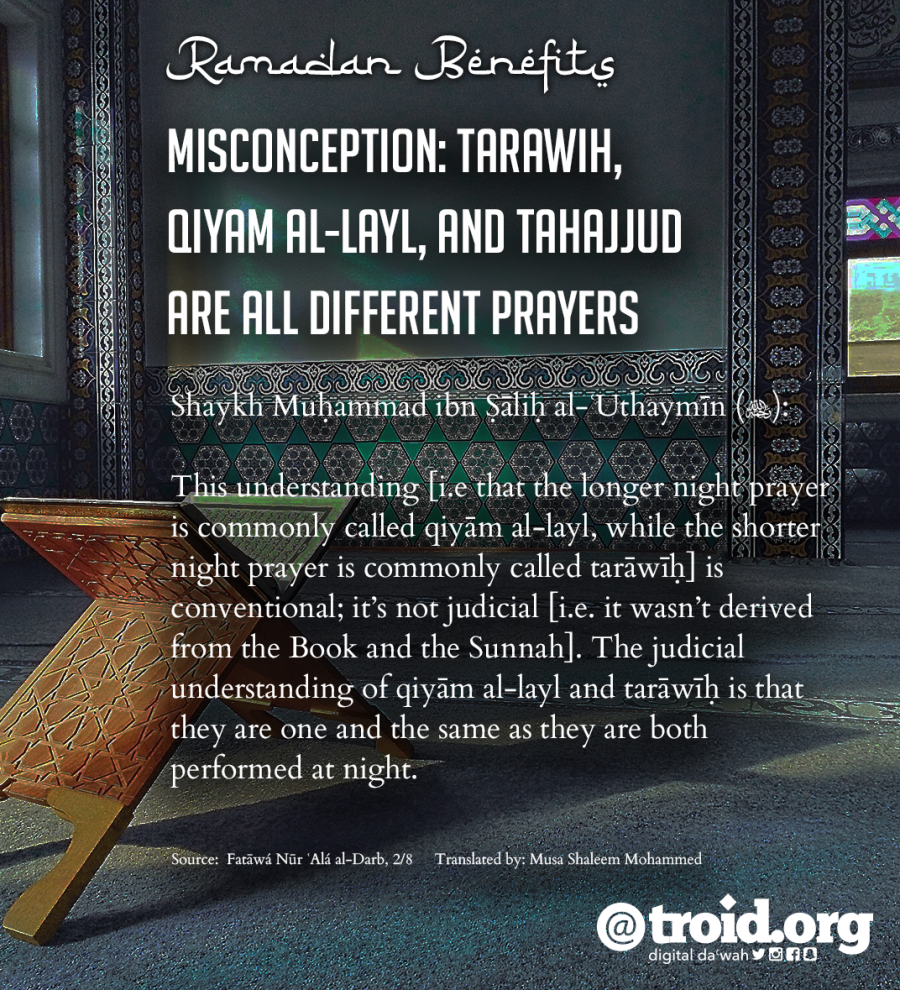 Are Tarāwīḥ, Qīyam al-Layl, and Tahajjud All Different Prayers?