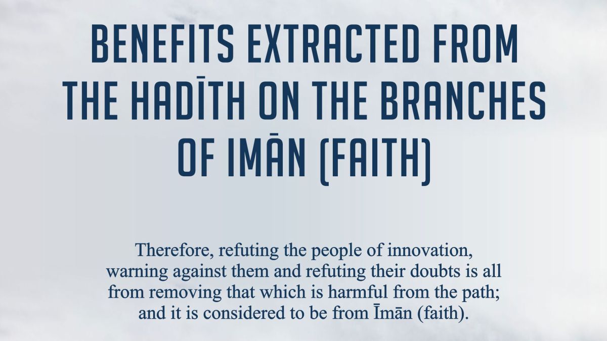 Therefore, refuting the people of innovation, warning against them and refuting their doubts is all from removing that which is harmful from the path; and it is considered to be from Īmān (faith).