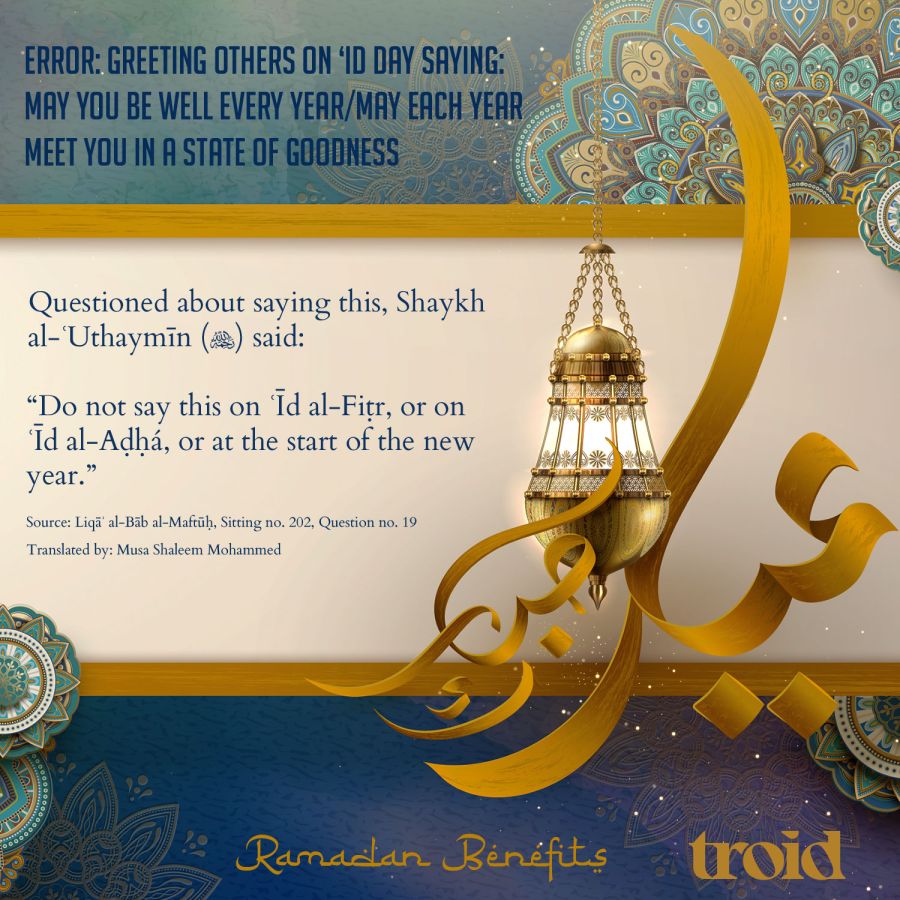 Greeting Others on ʿĪd Day Saying: “May You Be Well Every Year/May Each Year Meet You in a State of Goodness”